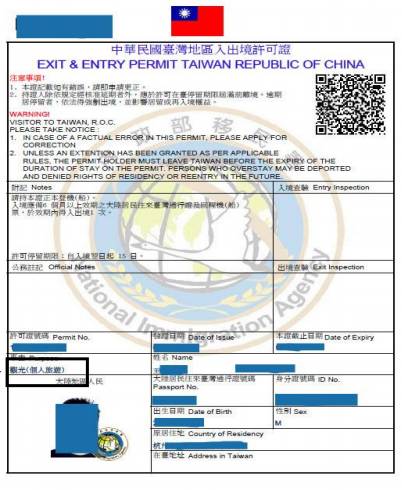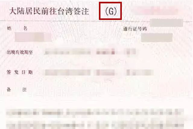 G签:大通证的内页,中间有个(G)的字样,简称G签,签注的英文字各代表着不用入台申请的方式。